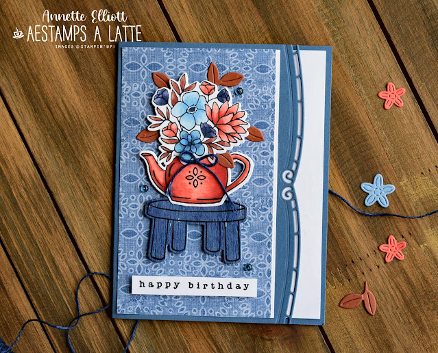 Blue and rust tones are one of my favorite color pairings and I was excited to see these colors for this weeks new color challenge at Sunday Stamps!In following this weeks challenge, I used the following Stampin' Blends to color my country flowers and watering can: